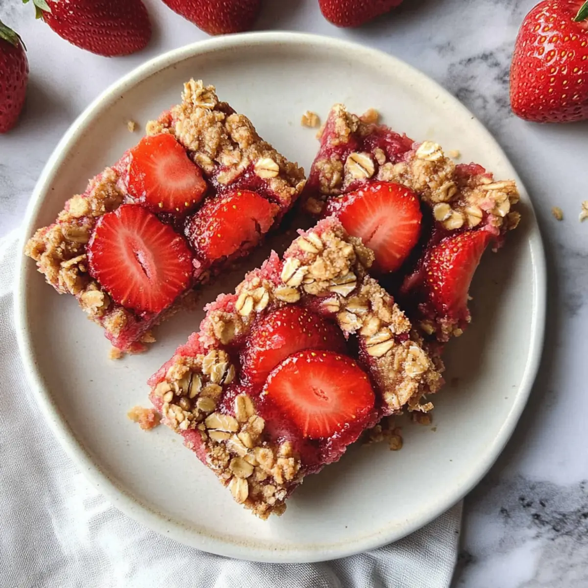 Imagine biting into a soft yet crumbly layer that cradles a juicy strawberry filling, all while knowing you’re treating your body to nourishing ingredients. Each bar is sweetened naturally, allowing you to savor the vibrant taste of strawberries without the overload of refined sugars. Plus, they’re versatile enough to tweak based on your preferences, adding an exciting twist to your homemade snacks. Why settle for fast food when you can whip up something this delightful right in your kitchen? Let’s dive into this simple, yet satisfying recipe!
